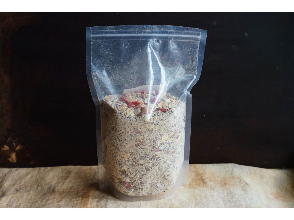 500g divoké směsi na přípravu 1,5 kg jogurtu doma nebo kdekoli na cestě, z ovesných vloček, sušených špendlíků, semínek a goji s probiotiky