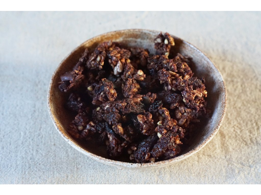 Raw vegan čokoládové muslli, skvělé na rychlé snídaně doma nebo na cestách. Stačí zalít vodou nebo rostlinným mlékem a máte hotovu výživnou snídani.