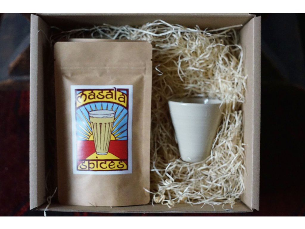 V dárkovém balení jsou dva sáčky po 50g (koření, čaj) a šálek 100ml.